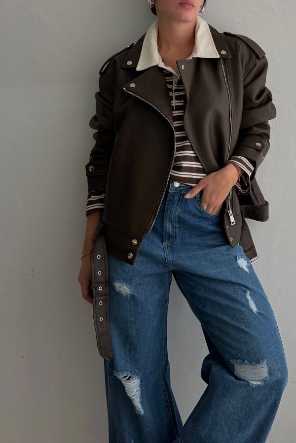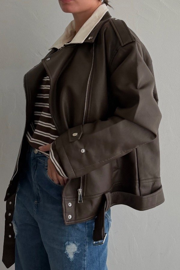 Descripción: campera oversized confeccionada en ecocuero. Detalle de cinturon desmotable. Avios y cierres en color niquel. Posee bolsillos laterales super amplios. Calidad espectacular. DIsponible en 3 colores.
