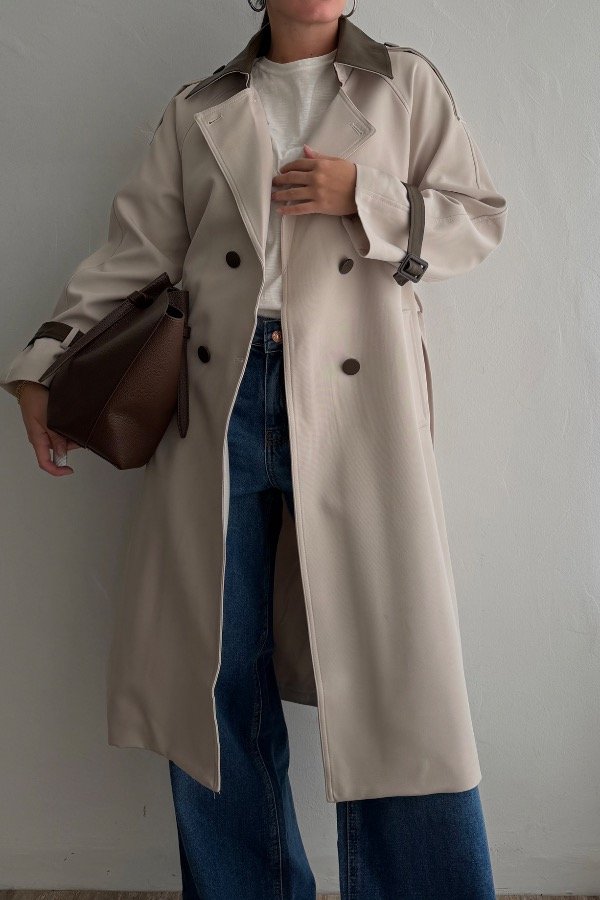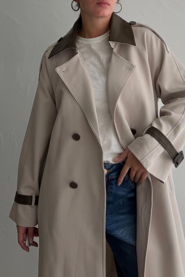 Descripción: trench importado. Posee forreria interna y detalle de ecocuero en el cuello y mangas. Tiene una calidad increible, y esta disponible en 3 colores: natural, beige y negro.