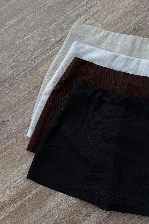 Descripción: short pollera confeccionado en lino. Tiene cierre invisible, y short abajo. Por atrás es pollera. Disponible en 4 colores.