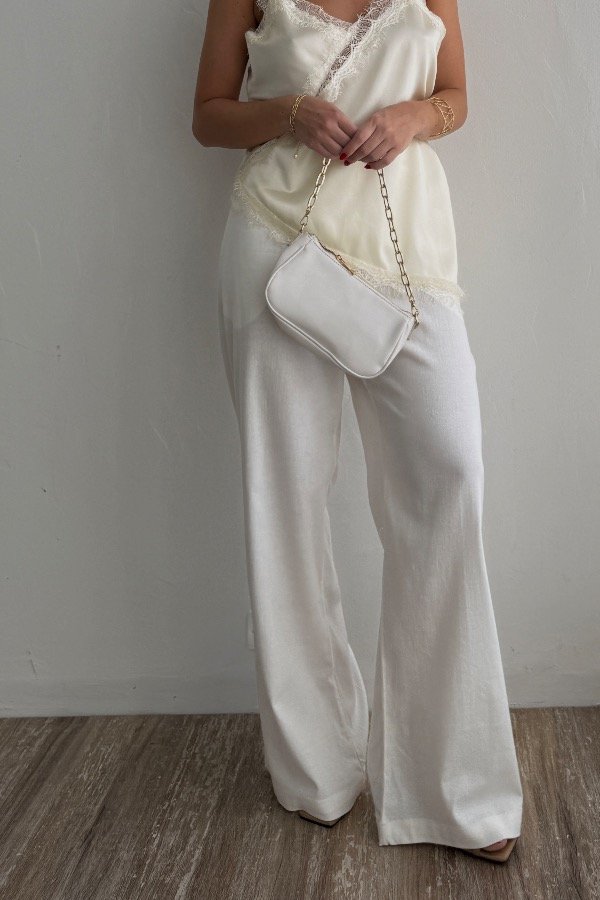 Descripción: pantalón wide leg, confeccionado en lino rústico. Bolsillos laterales amplios. Boton y cierre al tono. Disponible en 3 colores. Podes combinarlo con el Chaleco Dean.