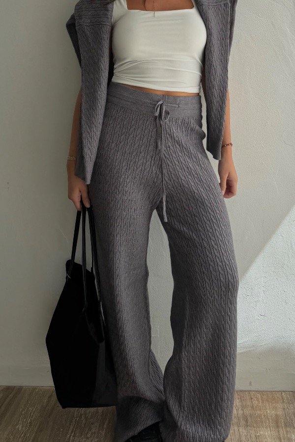 Descripción: pantalón tejido importado, confeccionado en hilado bremer pesado. Cintura regulable. Podes usarlo en set con nuestro sweater Mecina. Calidad única!