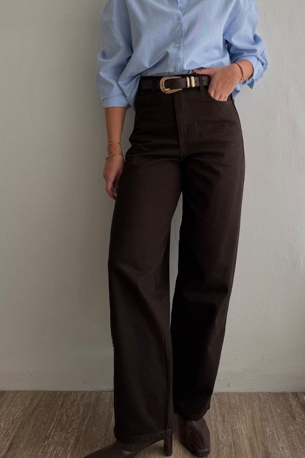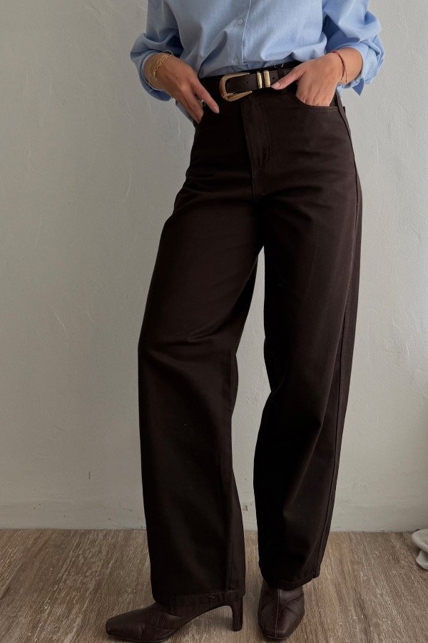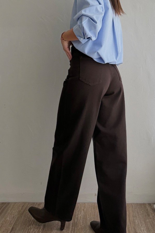 Descripción: pantalon corte baggy, confeccionado en gabardina rigida. DIsponible en color chocolate oscuro y negro. Tiro super alto, con un calce espectacular.