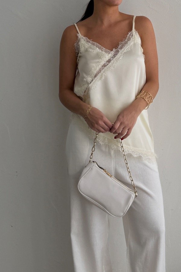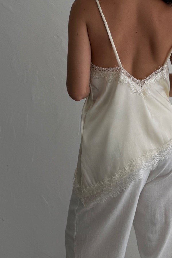 Descripción: blusa lencera escotada, confeccionada en sedita. Detalle de puntilla al tono. Espalda en V pronunciada. Disponible en 4 colores.