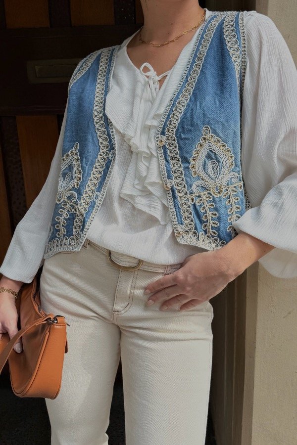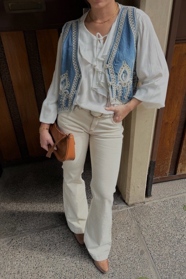 Descripción: blusa con detalle de vuelos en el pecho, confeccionada en bambula. Súper fresca. Disponible en 3 colores.