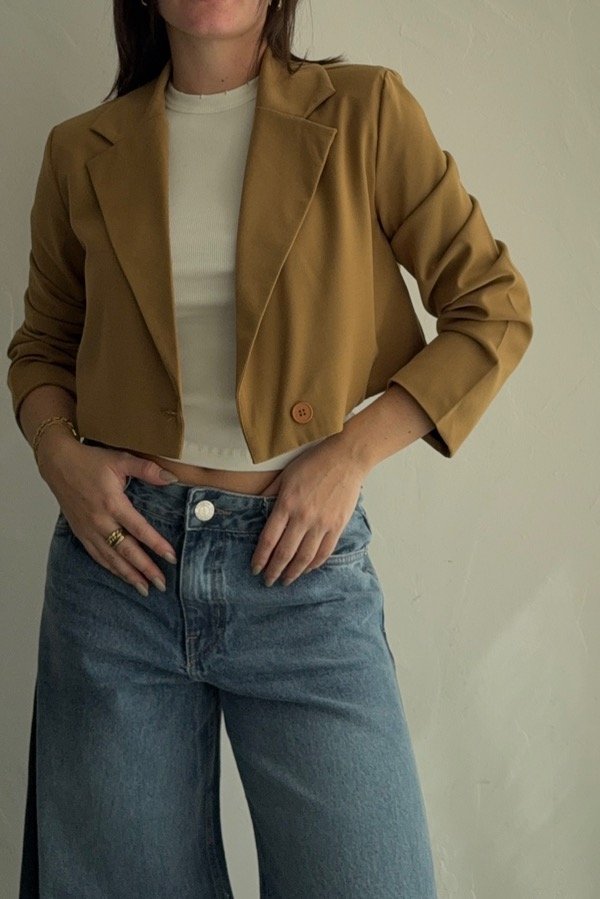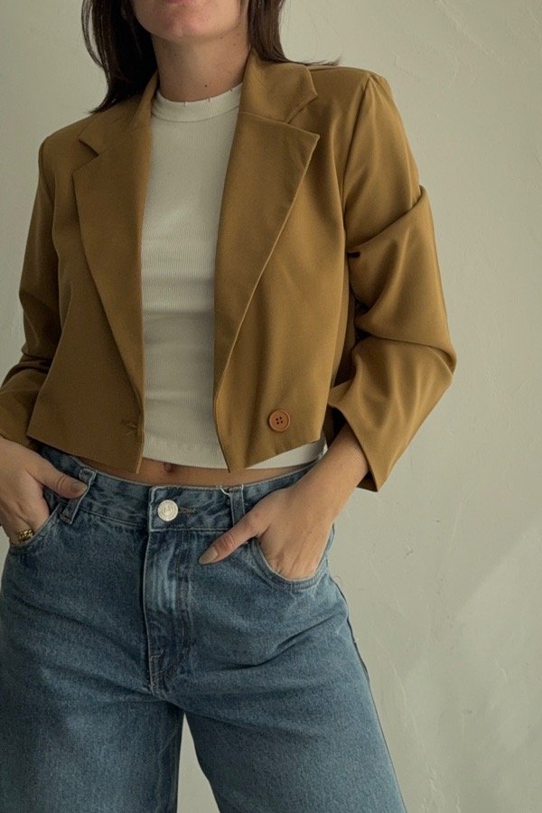 Blazer sastrero crop, con forreria interna. Botón al tono, disponible en 3 talles.