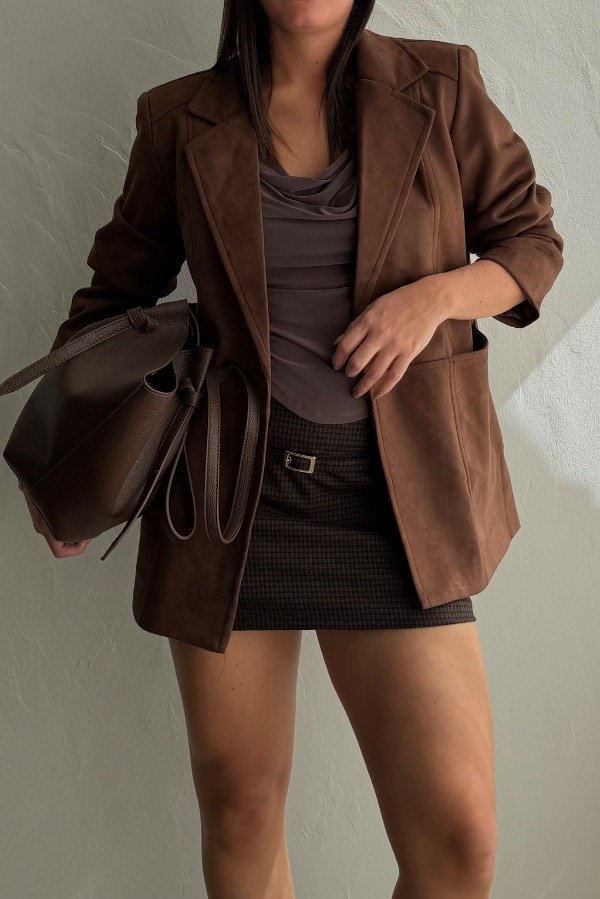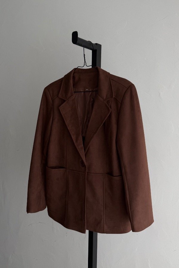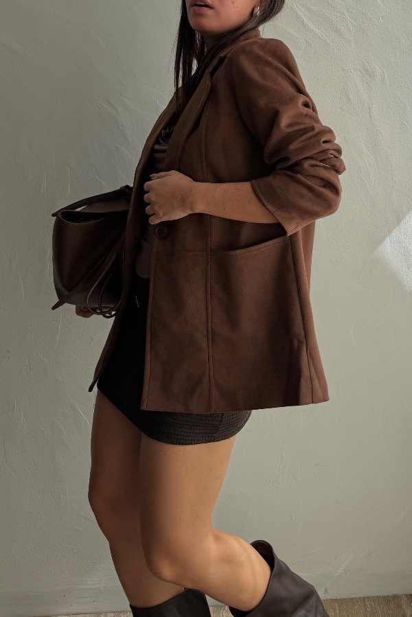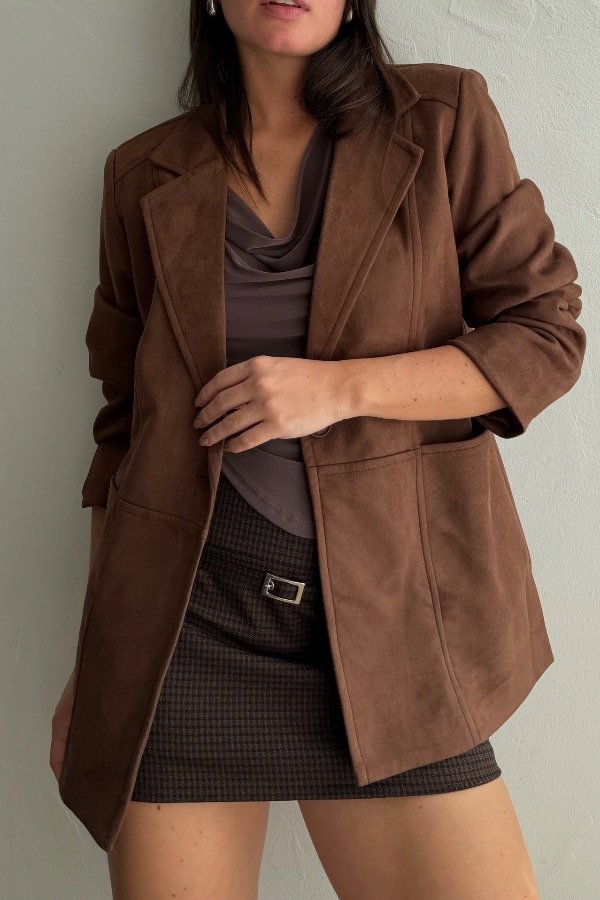 Descripción: blazer importado confeccionado en gamuza. Forreria interna y botón al tono. Bolsillos súper amplios laterales.
