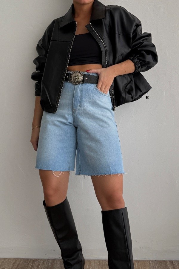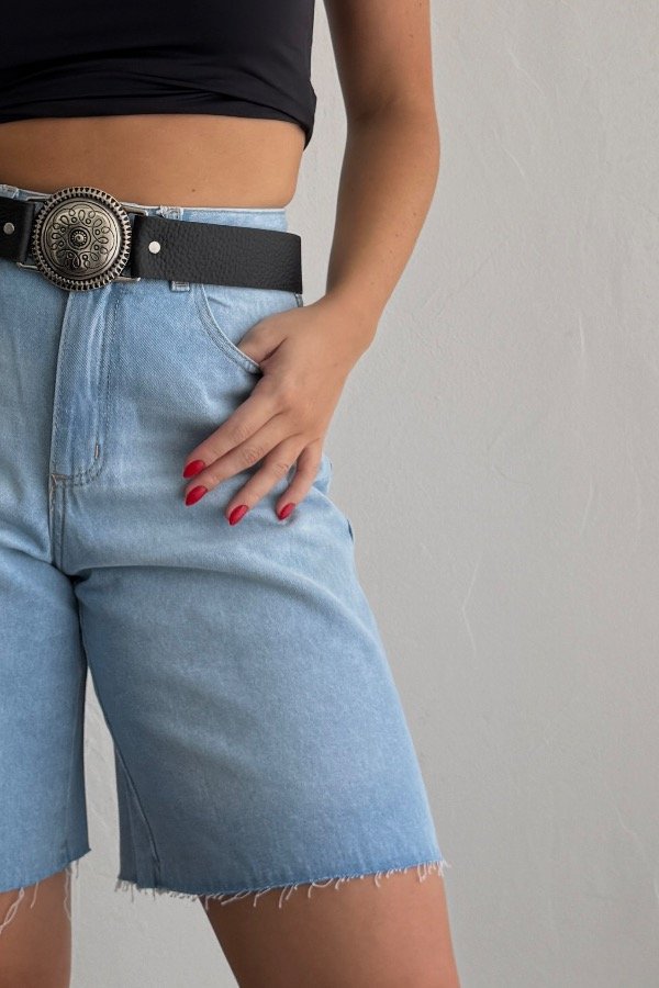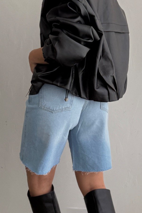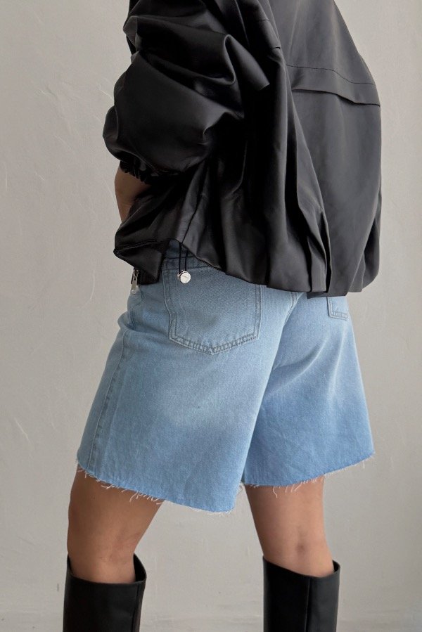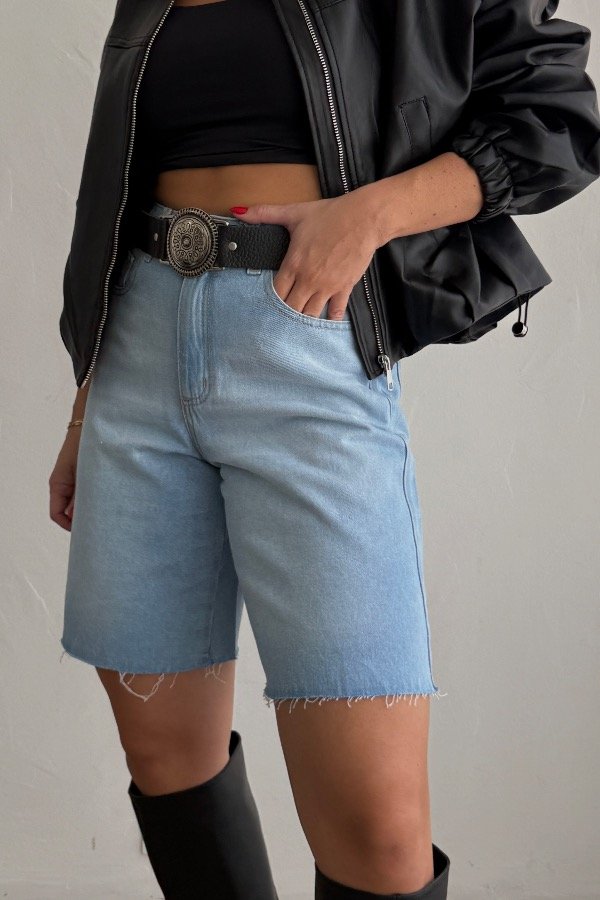Descripción: bermuda tipo skater de Jean rígido. Terminaciones desflecadas. Disponible en color celeste.