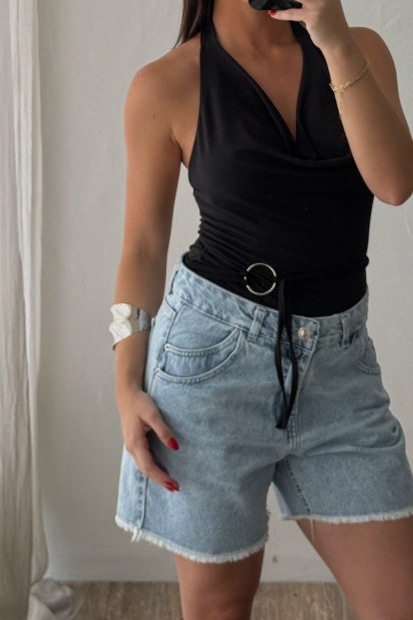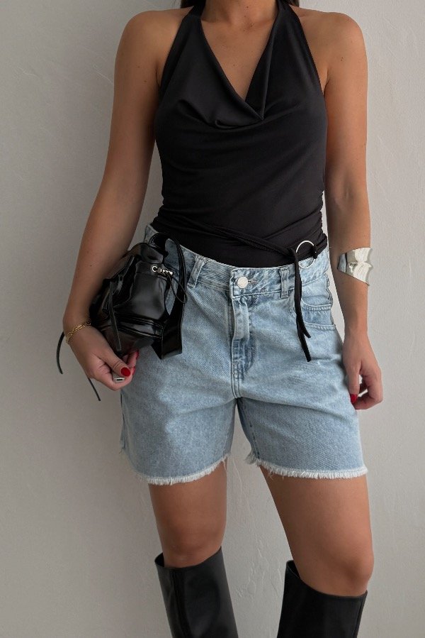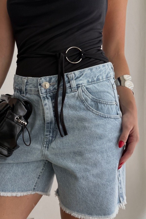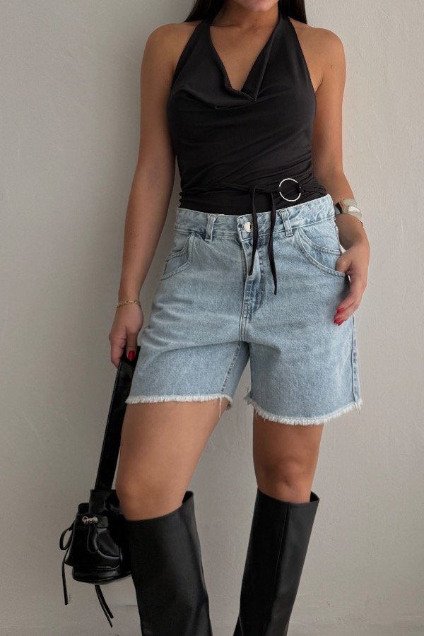 Descripción: bermuda confeccionada en denim rigido. Detalle de doble bolsillo. Terminaciones desflecadas.