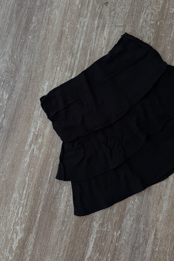 Descripción: pollera de lino con volados. Cierre lateral invisible.