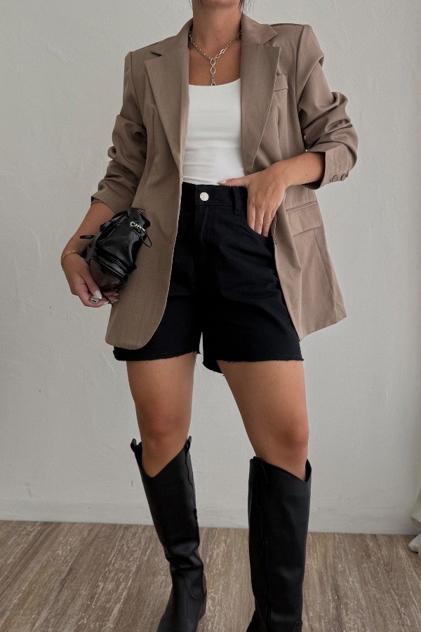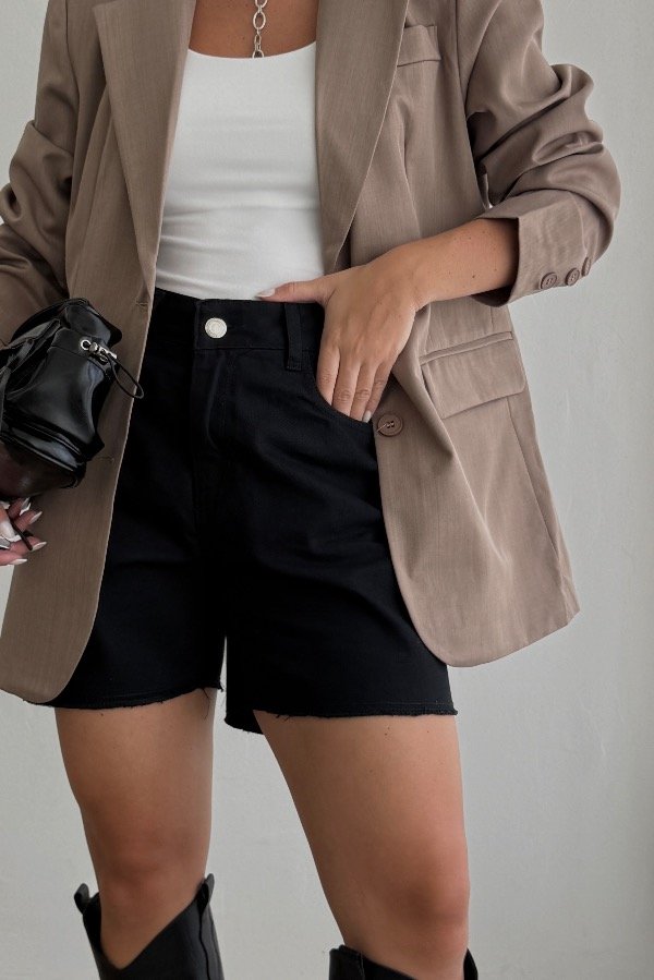 Descripción: bermuda de jean rígida. Confección normal. Terminaciones desflecadas.