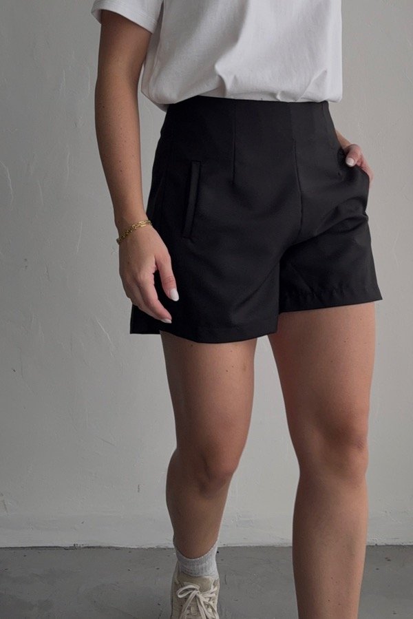Short estilo sastrero con bolsillos en el frente. Cierre lateral invisible, podes combinarlo con nuestro chaleco lugo.