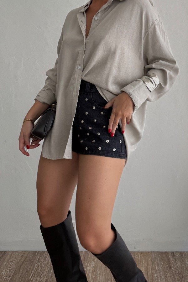 Descripción: short de jean tiro bajo, con detalle de remaches en el frente.