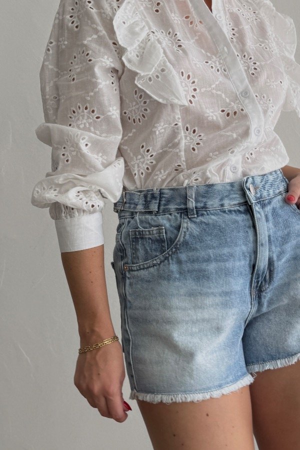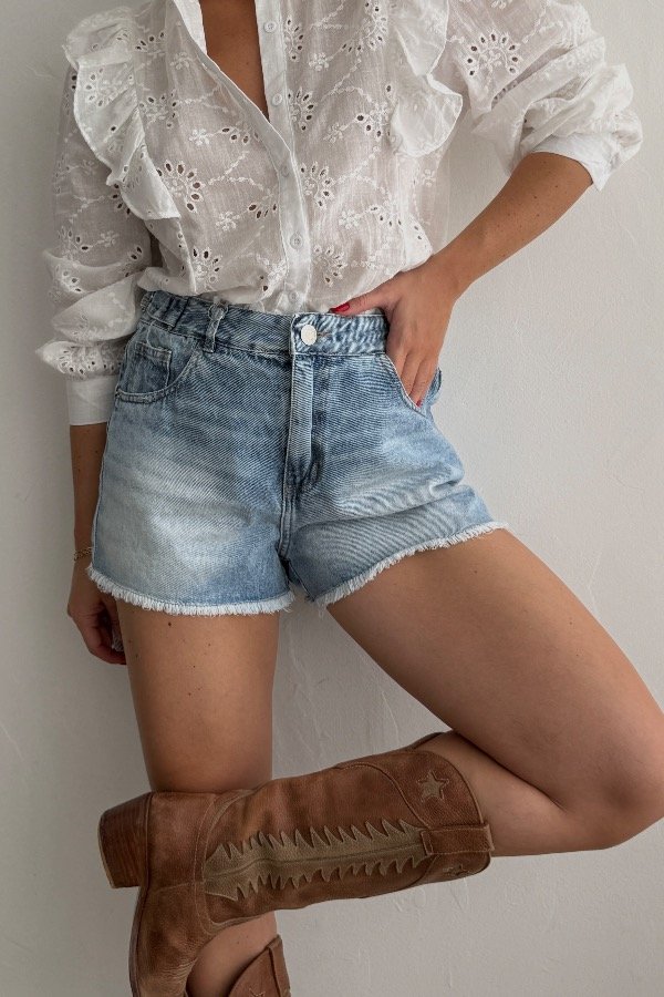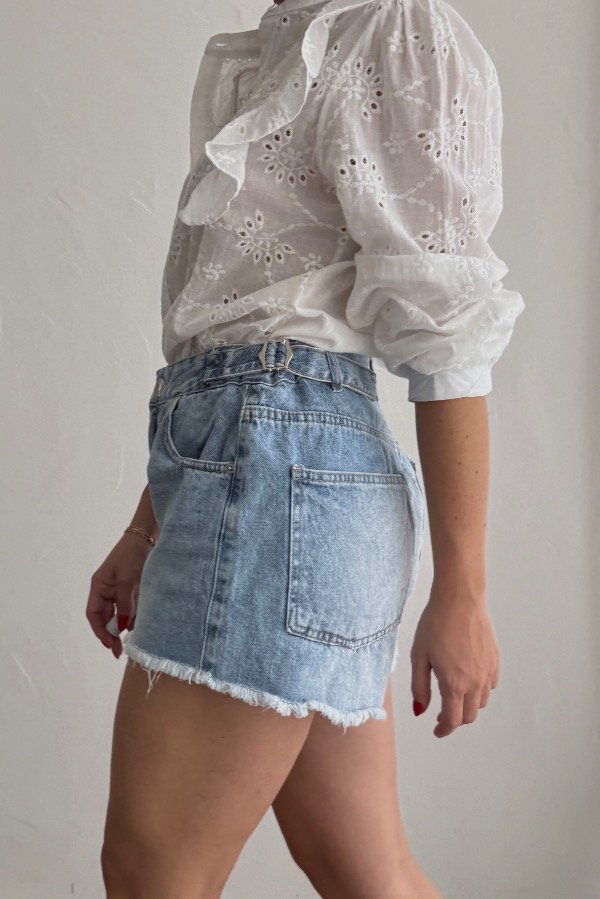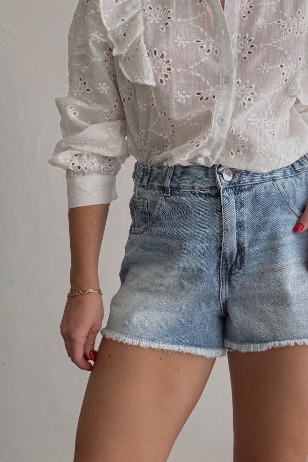 Descripcion: short de jean con detalle para ajustar en la cintura. Terminaciones desflecadas. Denim rígido, cede con el lavado.