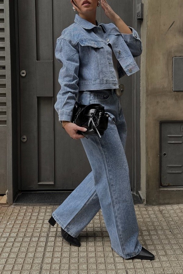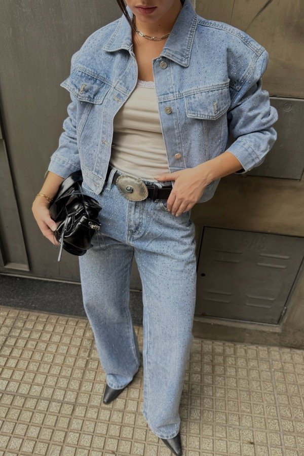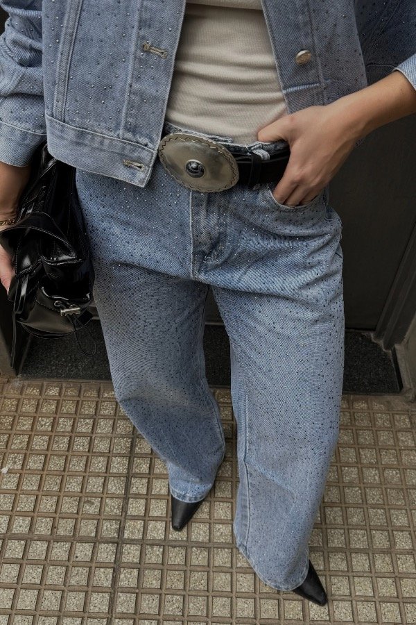 Descripción: jean recto con detalle de hotfix. Denim rígido. Recomendamos tener mucho cuidado al lavar la prenda. Evitar el rose.