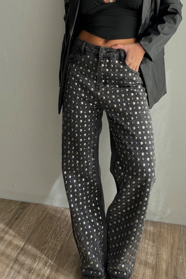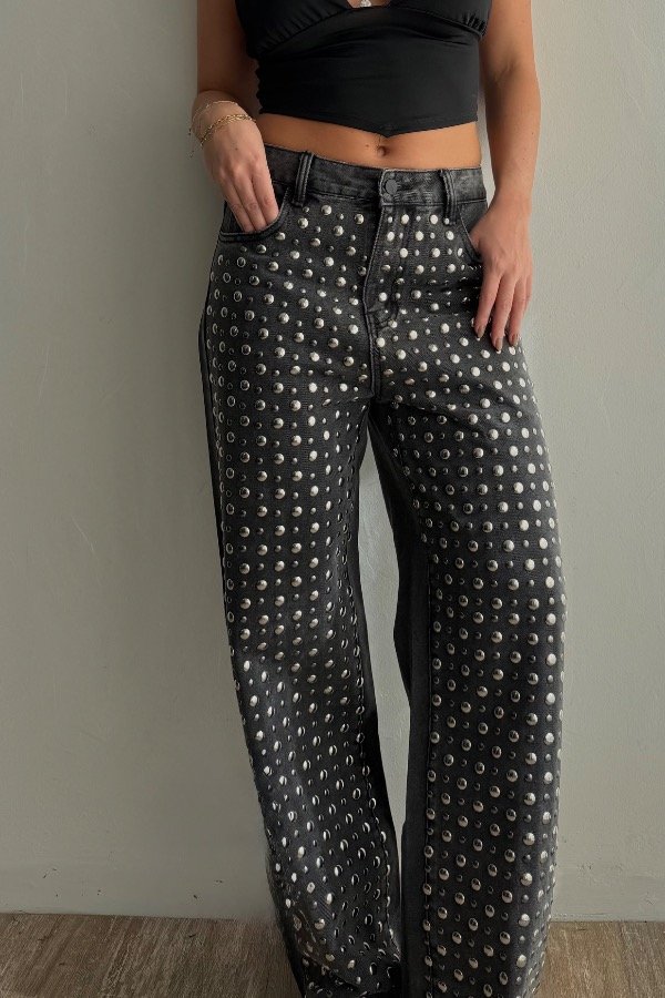 Descripción: wide leg con detalle de tachas el frente, en diferentes tonos. Referencia: en la foto usa talle 38.