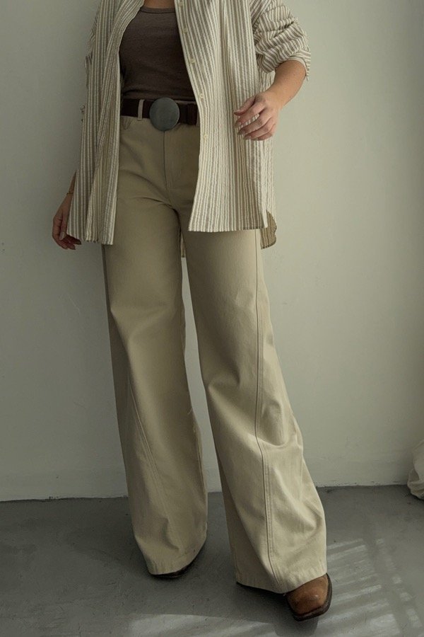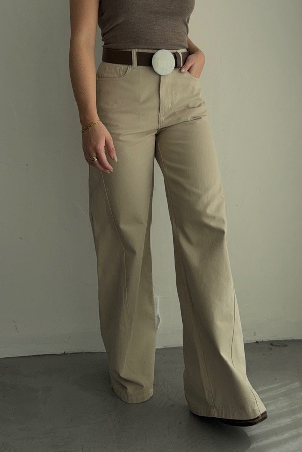 Wide leg confeccionado en gabardina rígida. Detalle de recortes, con elástico en la parte trasera de la cintura. ¡Calce perfecto!