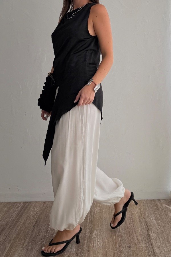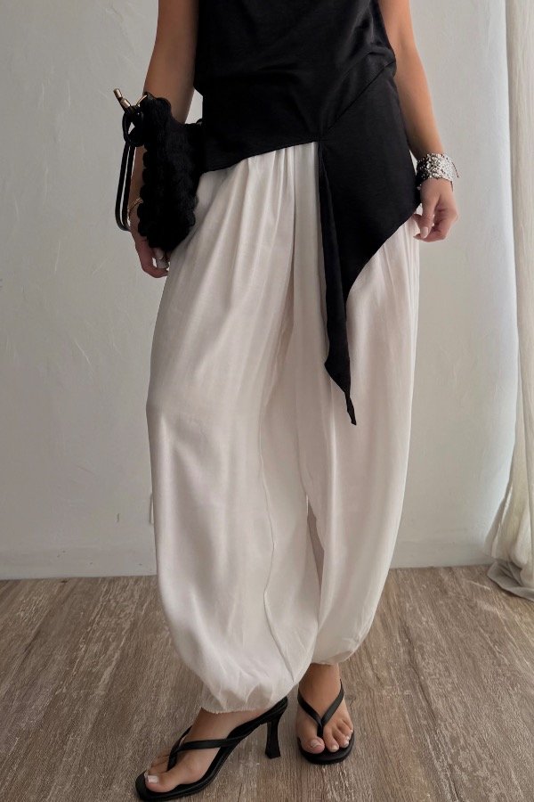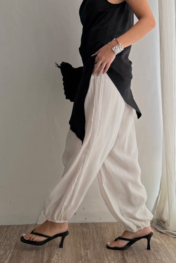 Descripción: pantalón balloon, súper en tendencia, confeccionado en tencel. Bolsillos laterales y cintura con elástico. Tiene elástico también en la parte inferior. Disponible en 3 talles.