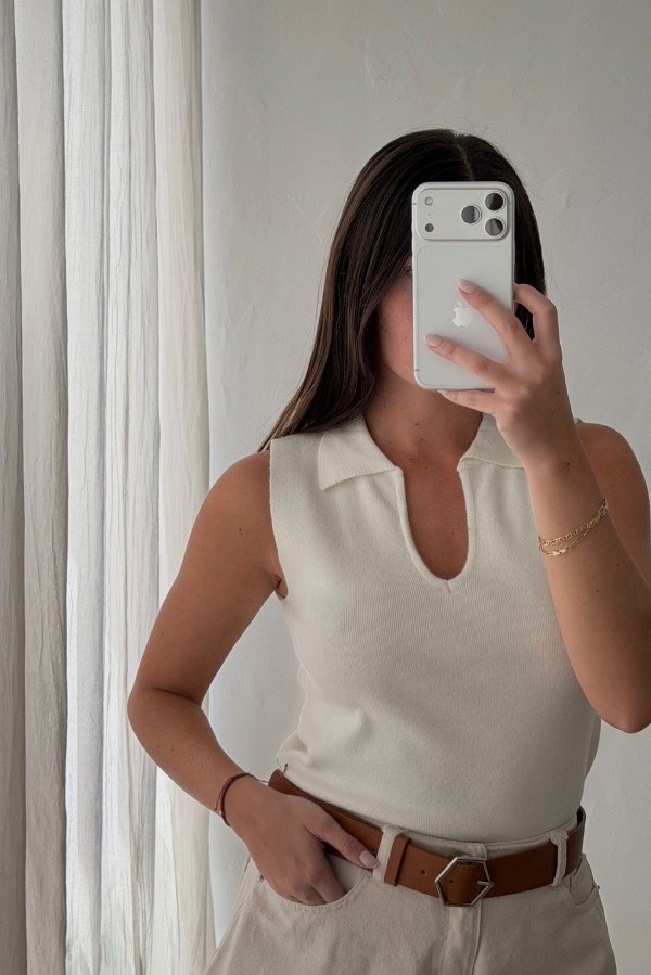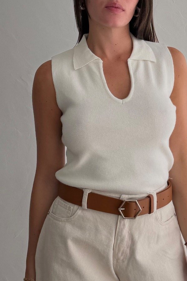 Descripción: musculosa estilo polo, con cuello, confeccionado en hilo. Disponible en 3 colores. Talle único.