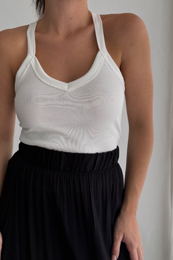 Descripción: musculosa de morley con espalda deportiva. Talle único. Tiene spandex.