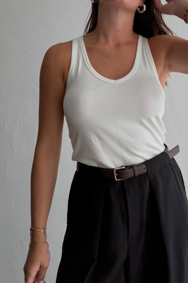 Descripción: remera musculosa escote en V, confeccionada en modal. Super fresca y comoda al cuerpo. Disponible en 3 colores, y 4 talles.