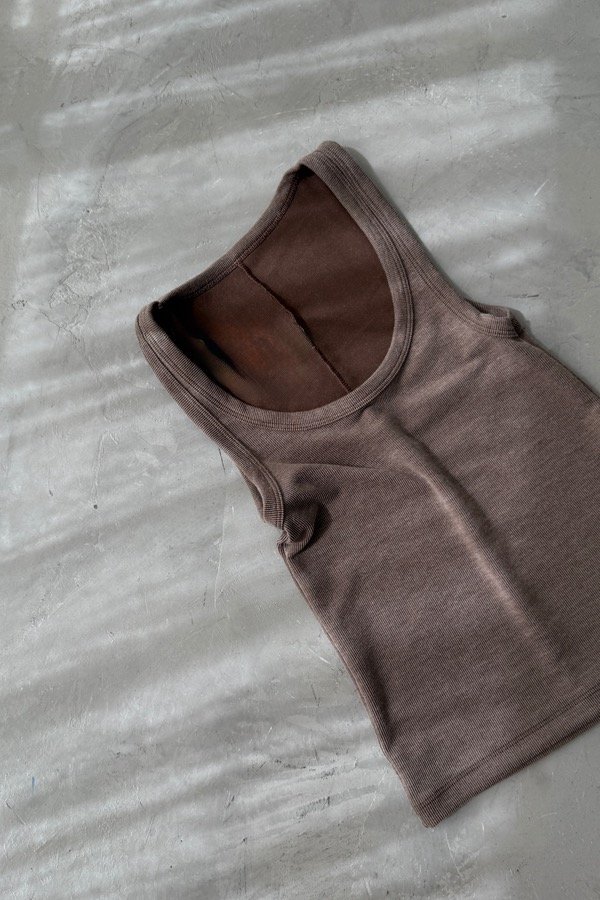 Musculosa cuello redondo, confeccionada en morley efecto gastado. Calidad premium.
