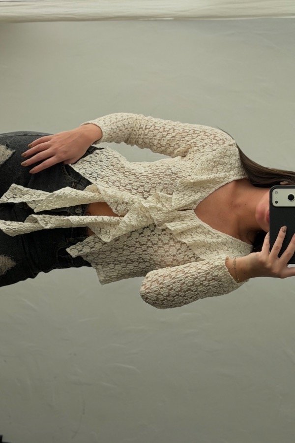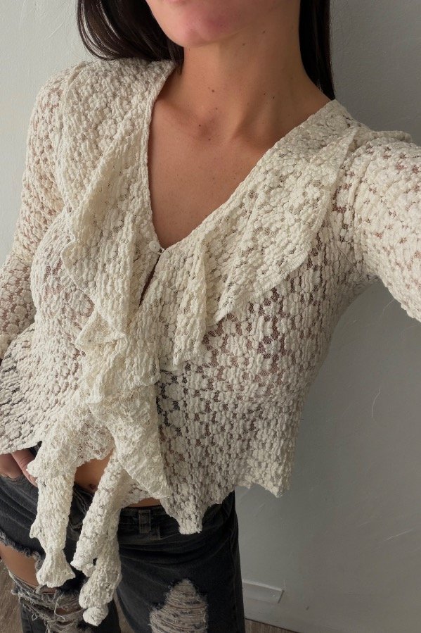 Descripción: remera confeccionada en encaje. Botones al frente y terminación irregular. Disponible en 3 colores.