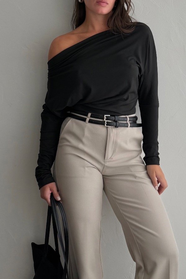 Descripción: remera mangas largas, cuello bote, confeccionada en modal gamuzado. DIsponible en negro y chocolate, en 3 talles: S, M y L.