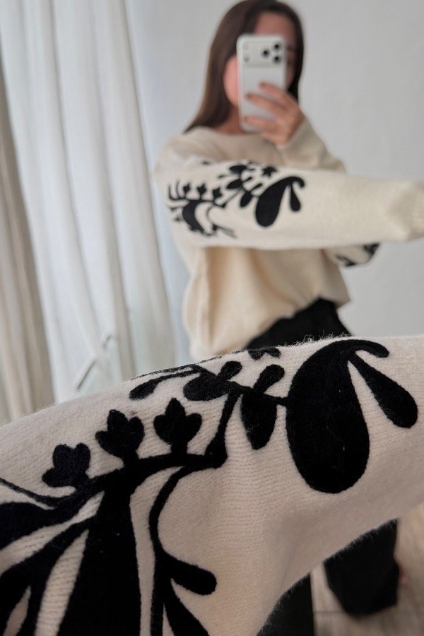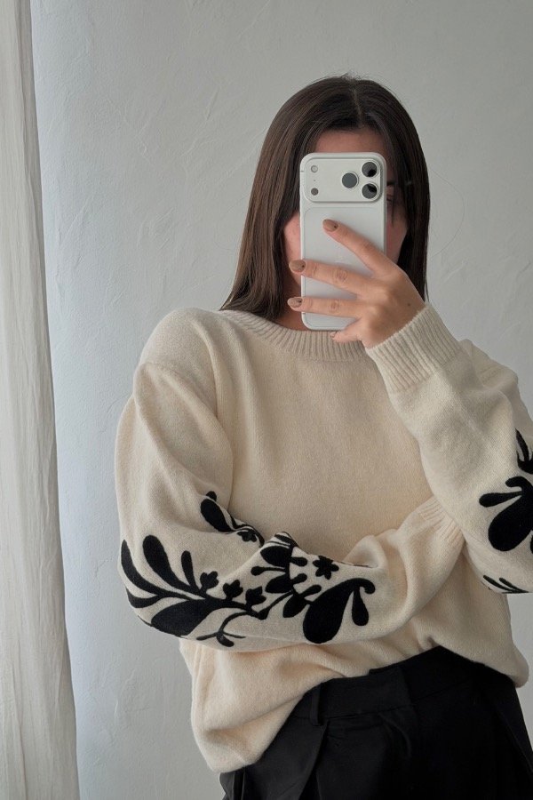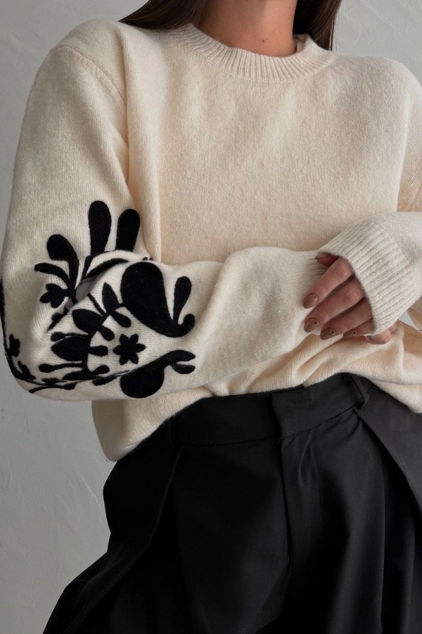 Descripción: sweater importado, con detalle de bordado en las mangas. Disponible en 3 combinaciones.