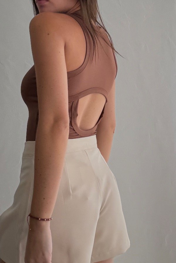 Descripción: body de lycra premium, con detalle de espalda descubierta. Posee botones en la parte inferior, para mayor comodidad. Disponible en marrón, gris y negro.