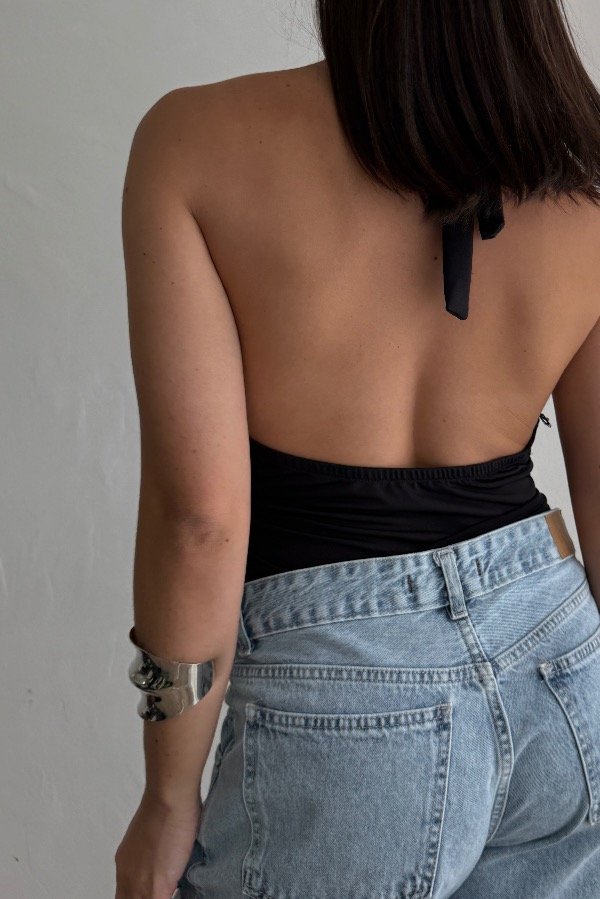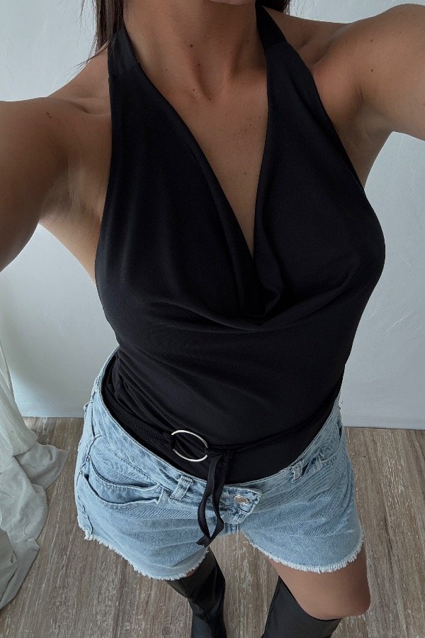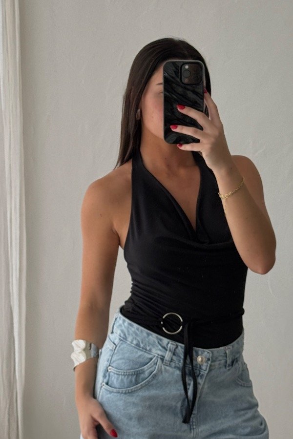 Descripción: top escote caído, confeccionada en microfibra, detalle de argolla para atar en el lateral. Disponible en 3 colores: negro, camel y amarillo.